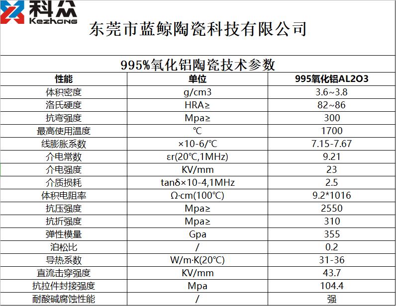 99.5%氧化鋁陶瓷技術參數(shù)